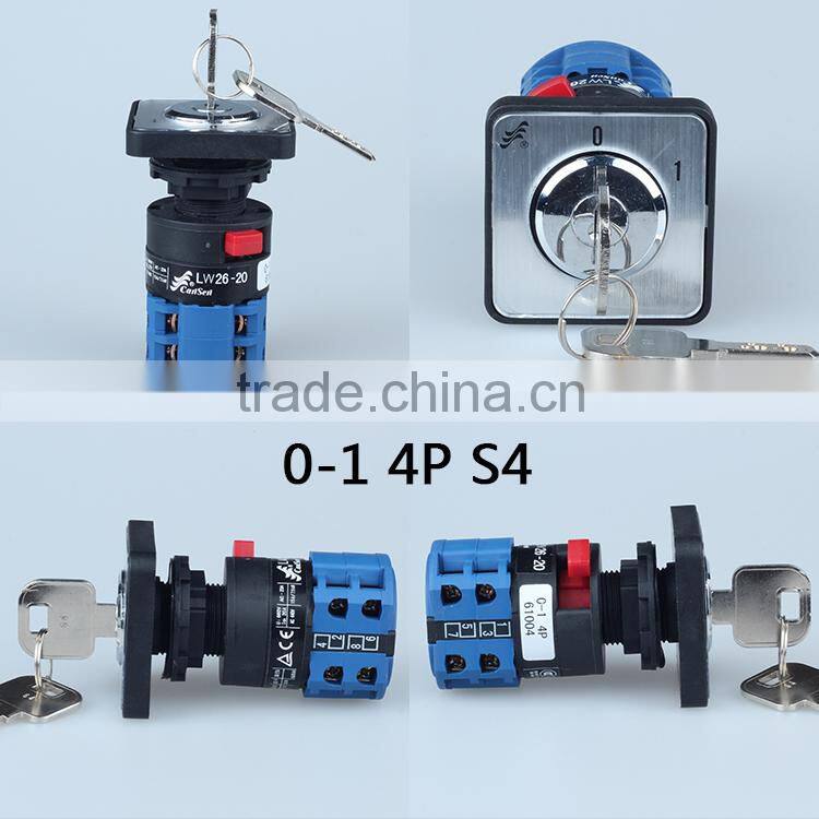 LW26S-20 S4 Single Hole 4P Key-lock Changeover Switch With Plate