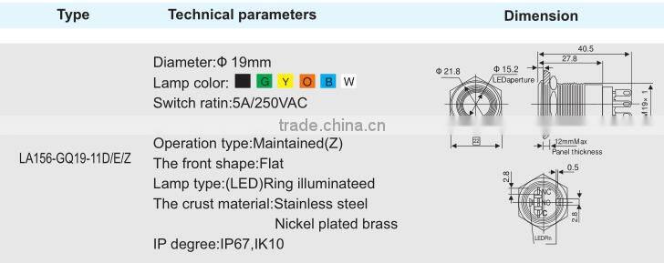 19m Waterproof Anti-vandal Custom Metal Push Button Switch Quality Choice