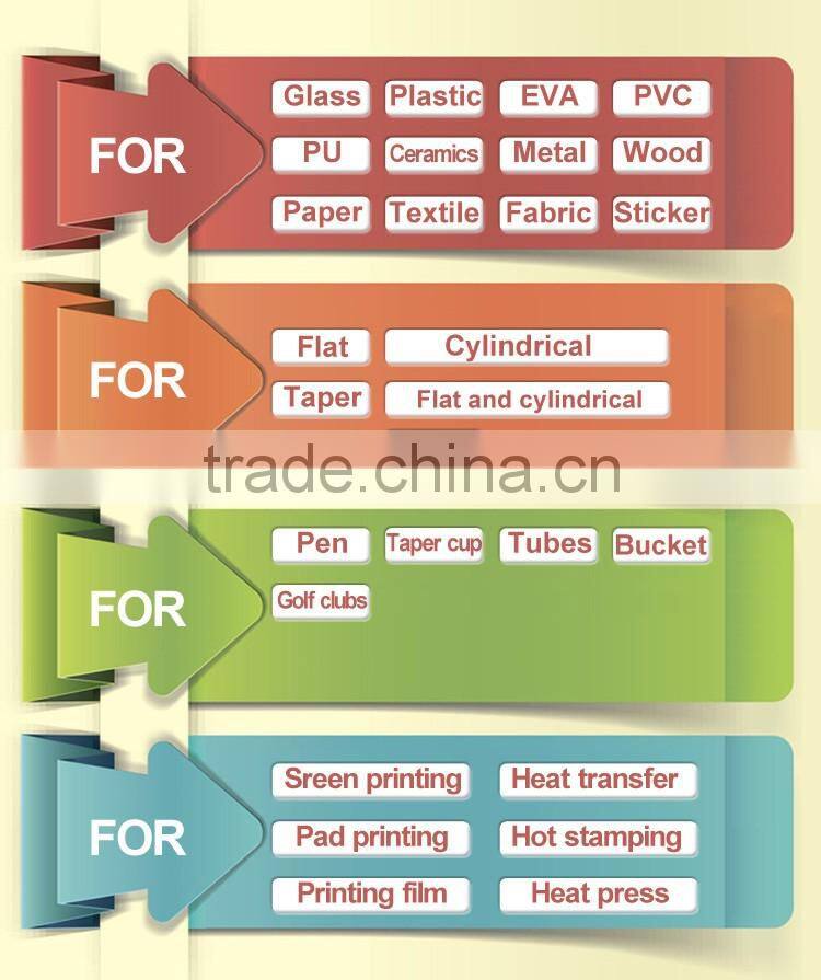 2) Process feature: Full color transfer printers for three-dimensional products, covered design fully and all surface of product, it can also covered corner , fillet and concave corner without wrinkle, the workpiece surface are smooth, no wrinkle, snap and obscission.