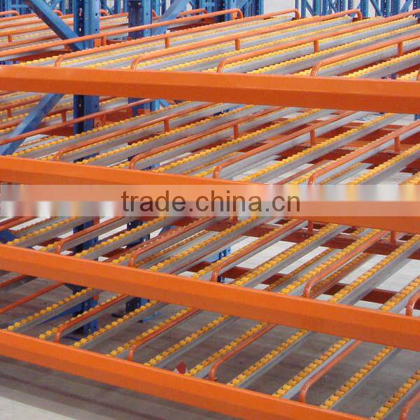Picking side of the rack is lower than loading side and the goods can automatically