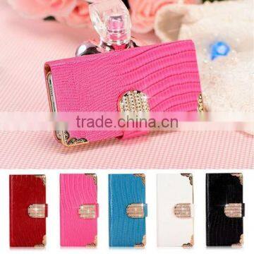 2014 Hot Selling Diamond Magnetic Leather Wallet Flip Mobile Phone Case Cover for Apple Iphone 6
