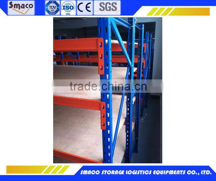 The adjustment distance of Smaco steel layers is 50mm for multiple usages. It is consisted of vertical columns, layer plates, corner pieces, pins, special bolts and plastic footing.
