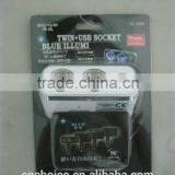 2 Way Cigarette Lighter Socket With USB