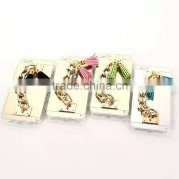 Luxury Tassel Metal Chain Mirror Rubber TPU Mobile Phone Cover Case For Apple IPhone 5G 5S 6S 6 Plus