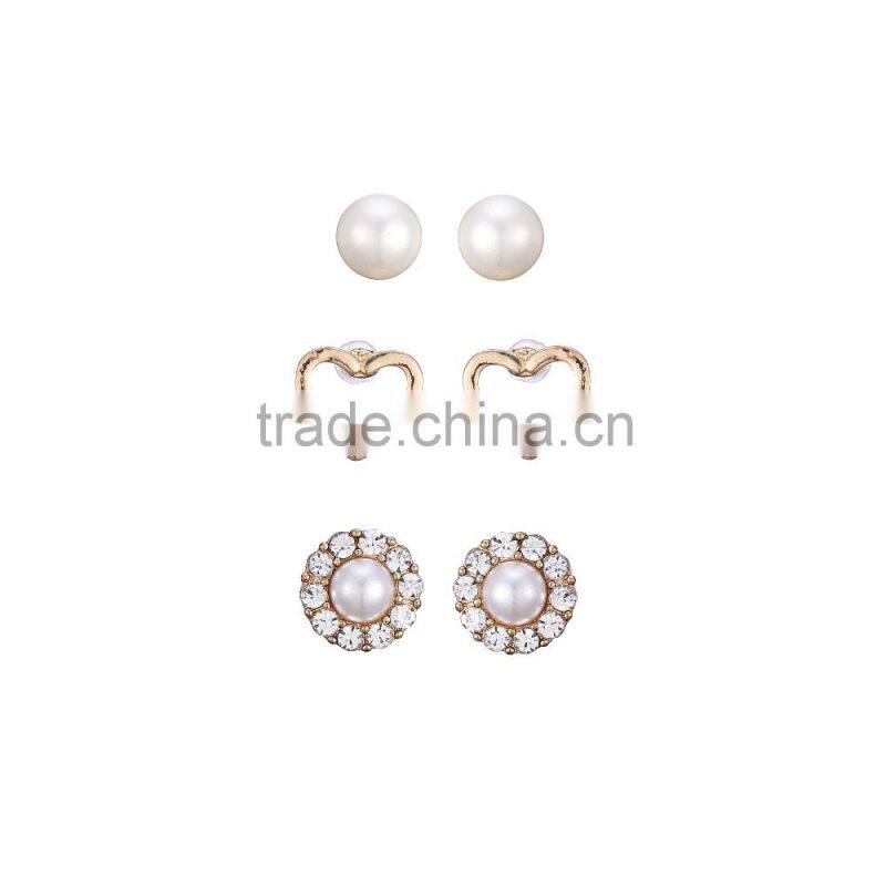 Gold Plated Cut Out Heart Shape Half Cultured Pearl Micro Pave Setting Stud Earring Set