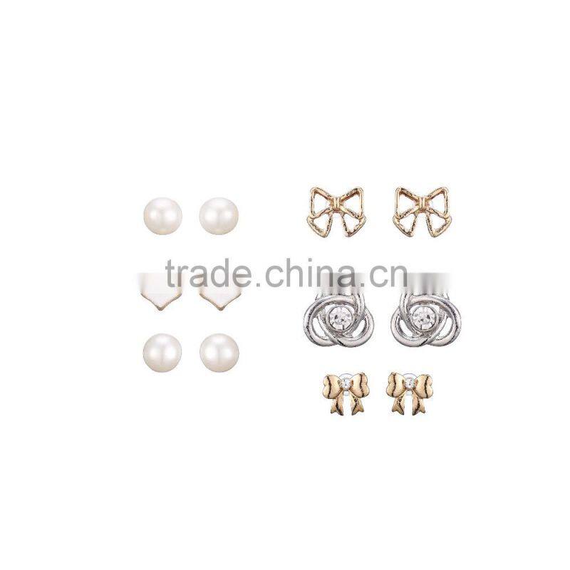 Fashion Jewelry Silver Bezel Pink Faux Pearl Luckybow Stud Earring Set