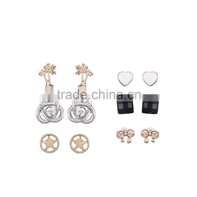 Home > Products > Earring&Earring Set > Gold Plated Palm Tree Love Knot Cut Out Star White Enamel Heart Black Square Faceted Lucky Bow Peach Rhinestone Micro Earrings