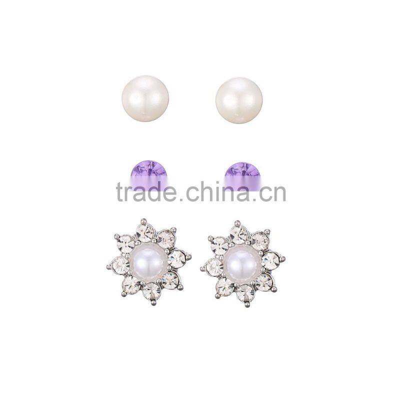 Faux Pearl Purple Crystal Rhinestone Encased Flower Mixed Stud Earring Pack