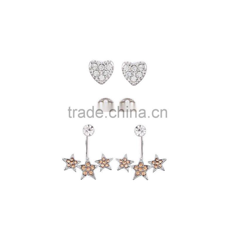 Colorful Champane Rhinestone Star Heart Shape Mini Pearl Round Stud Ear Jacket Mixed Earring Pack