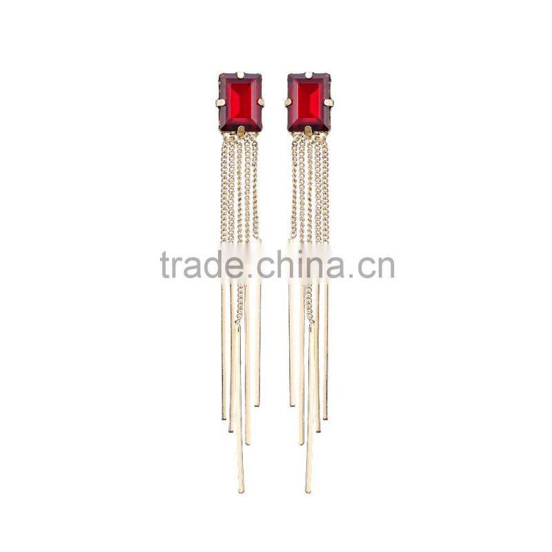Fashion Long Tassel Dimante Link Chain Bohemian Dangling Stud Earring in Gold Plating For Girls