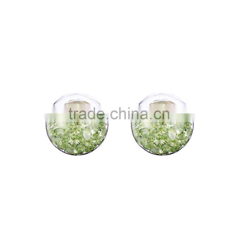 Fashion Jewelry Cute Front And Back Earrings Transparent Glass Double Sided Ball Dyed Green Diamante Accents Inside Stud Earring