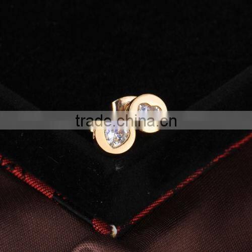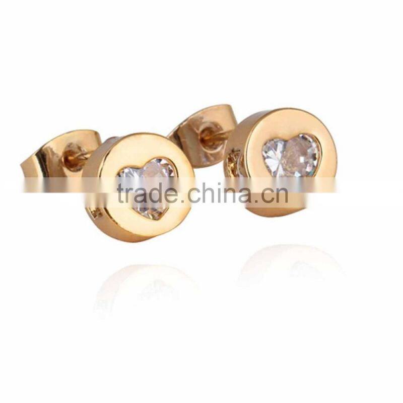Fashion Jewelry YiWu Factory Stylish Gold Plated Heart Shaped Crystal Round Stud Earrings