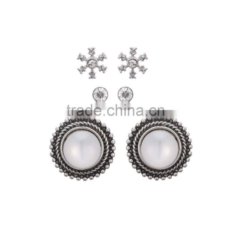 Fashion Jewelry Snowflake Round Opal Rhinestone Stud Earring Set In Antique Silver Plating Christmas Gift