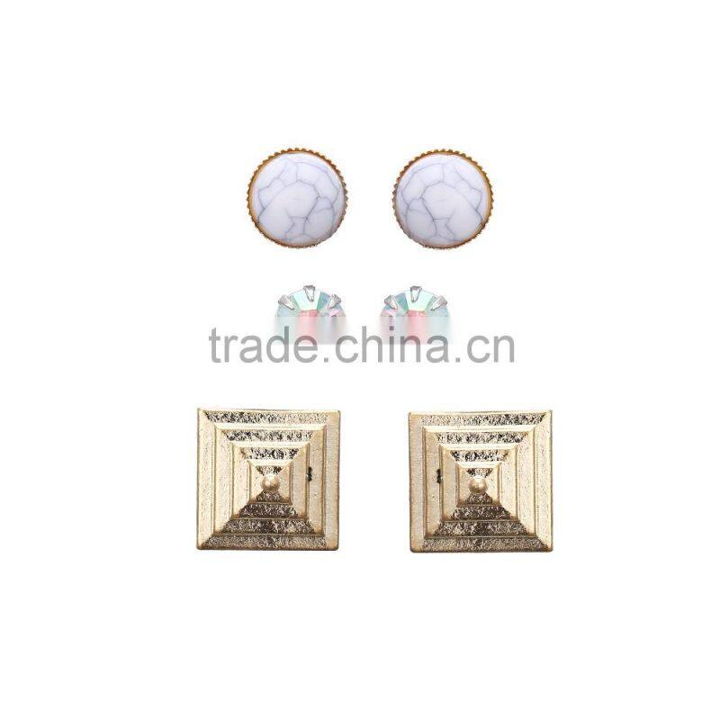 Fashion Jewelry Women's Marble AB Stones Dimante Crystal Pyramid Stud Earring Set In KC Gold Plating