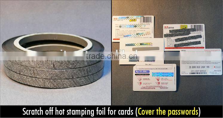 We also can produce Scratch off hot stamping foil for cards (Cover the passwords), please contact us know more.