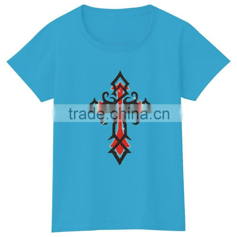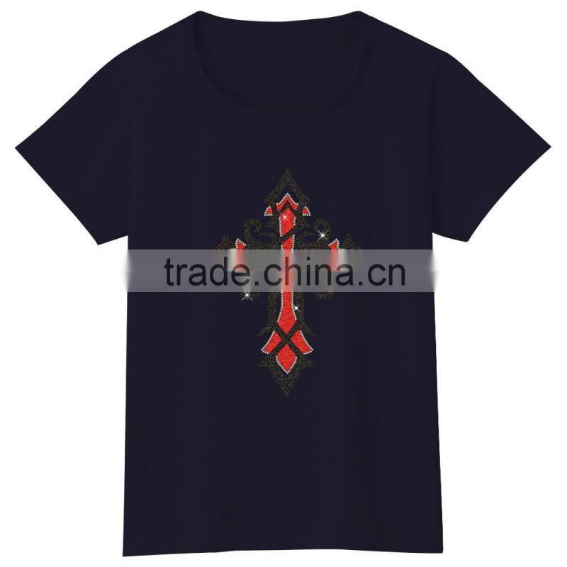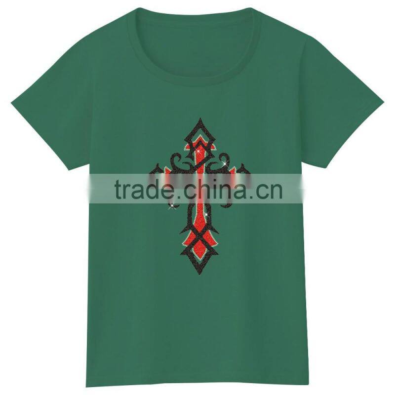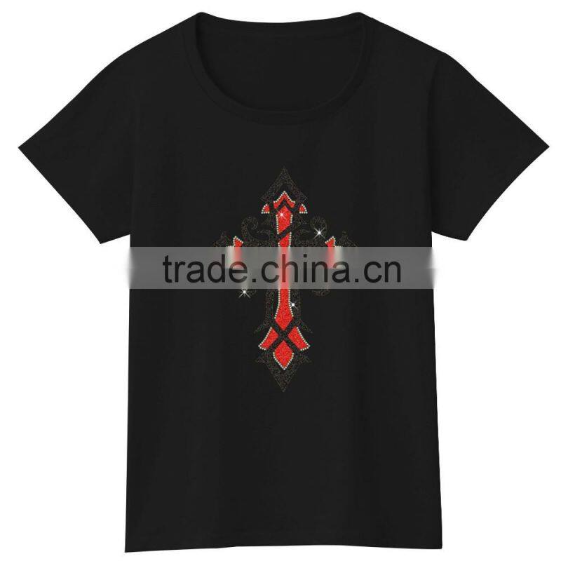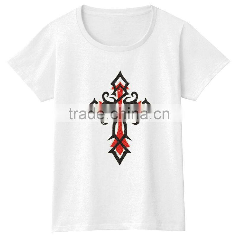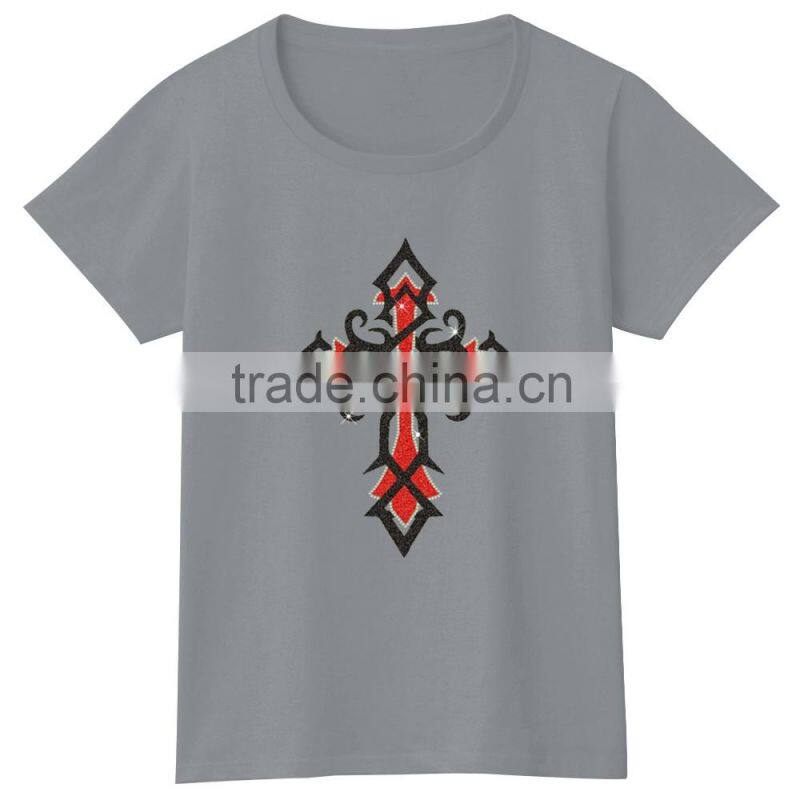 Customize Design Cross Glitter Motif OEM Service Supply Type Women Tshirt