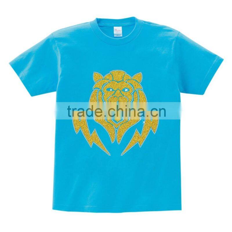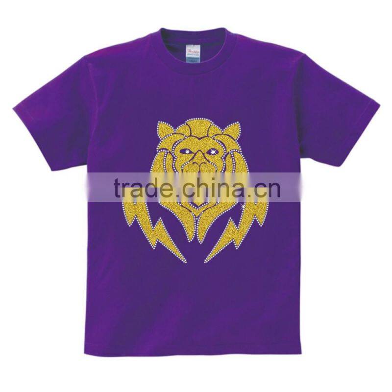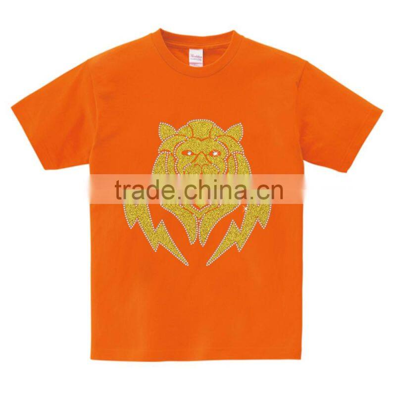 Hotfix Iron on Glitter Tiger Motif Custom Design Men Multicolor Cotton Tshirt