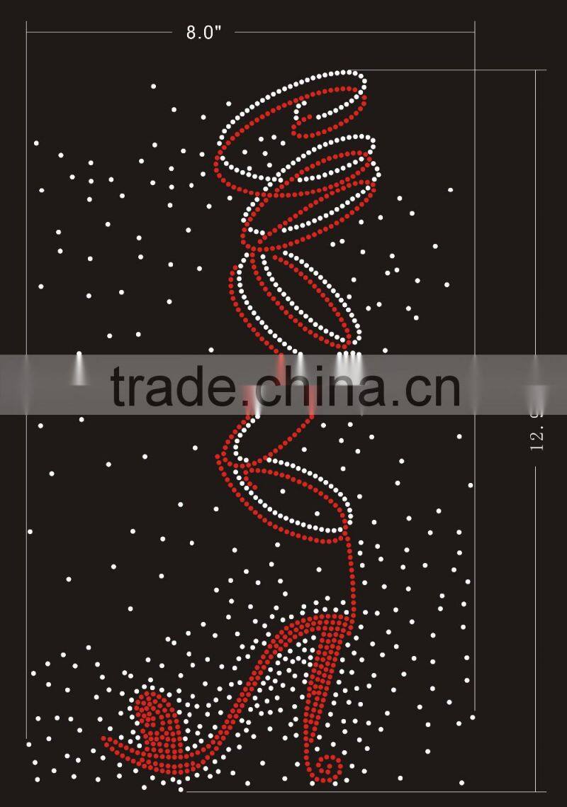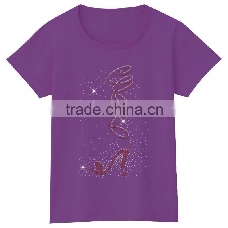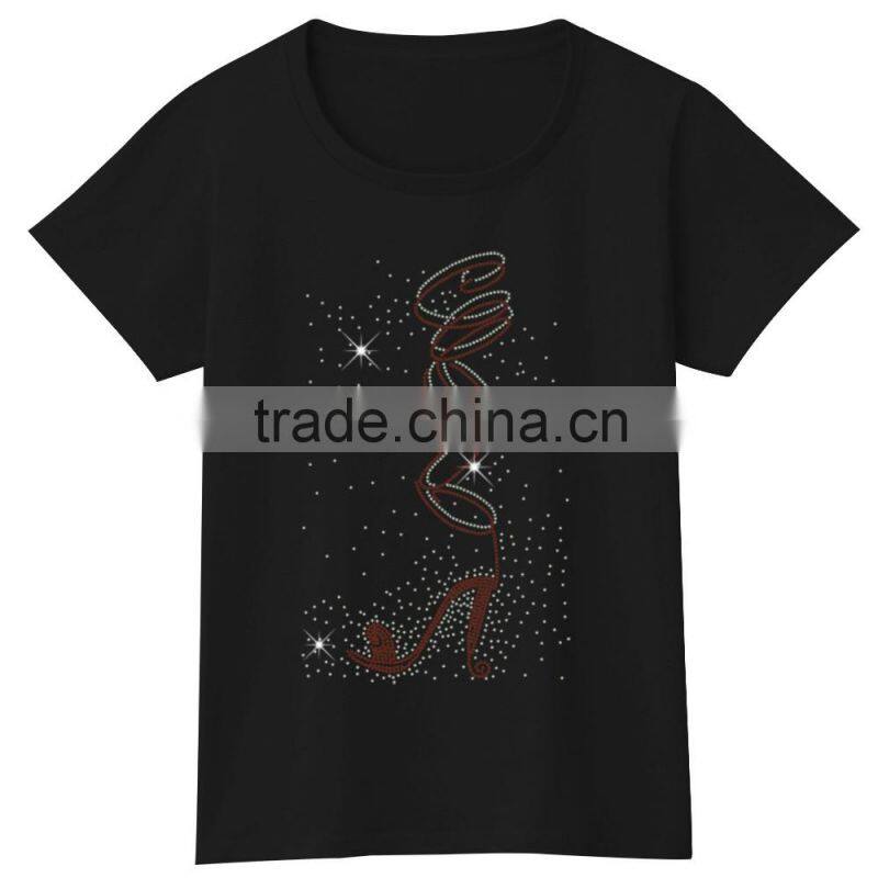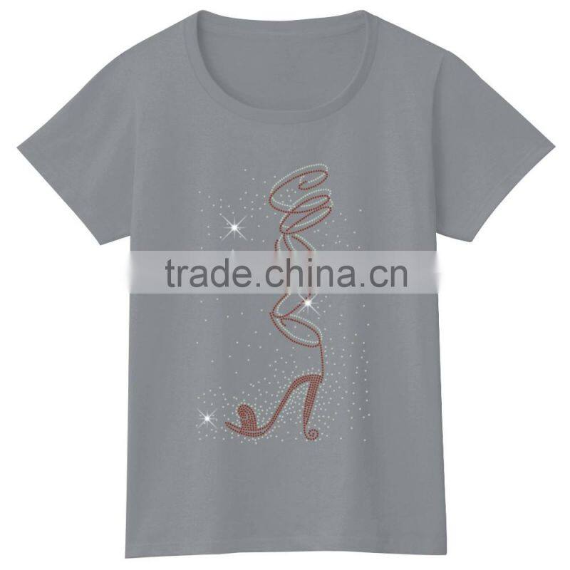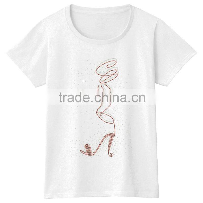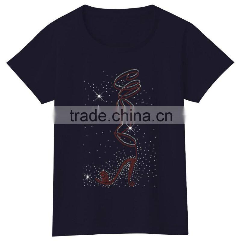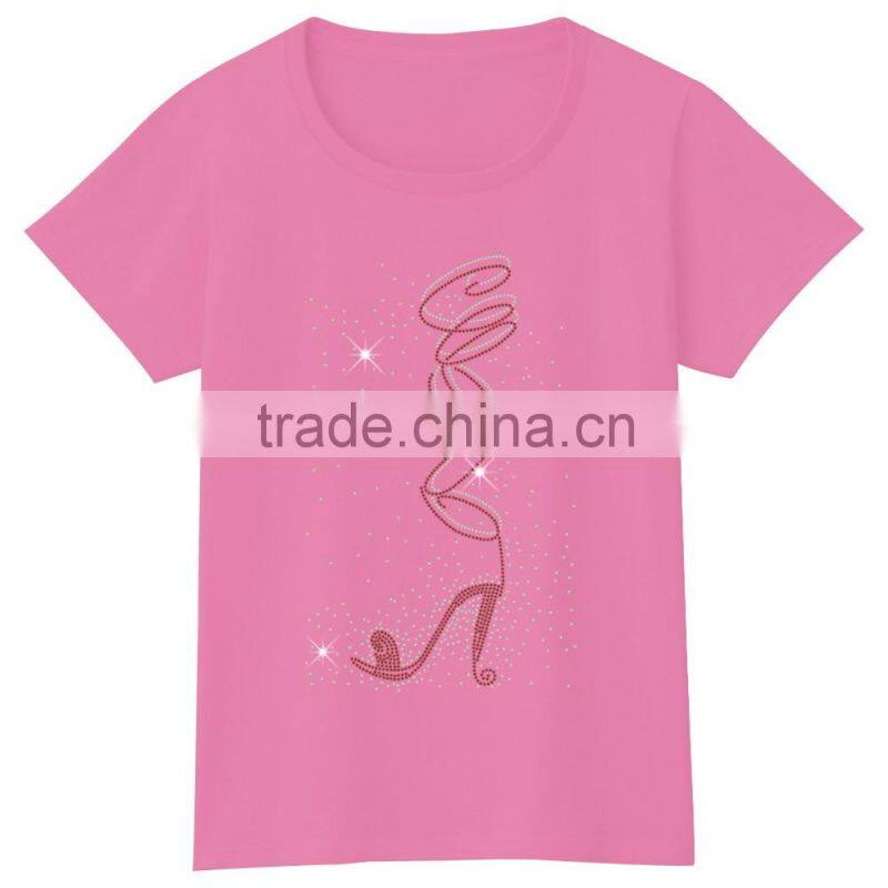 Red High Heels Short Sleeves Rhinestone Girls Soft Cotton Plain Tshirts