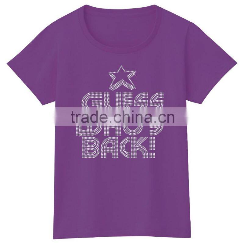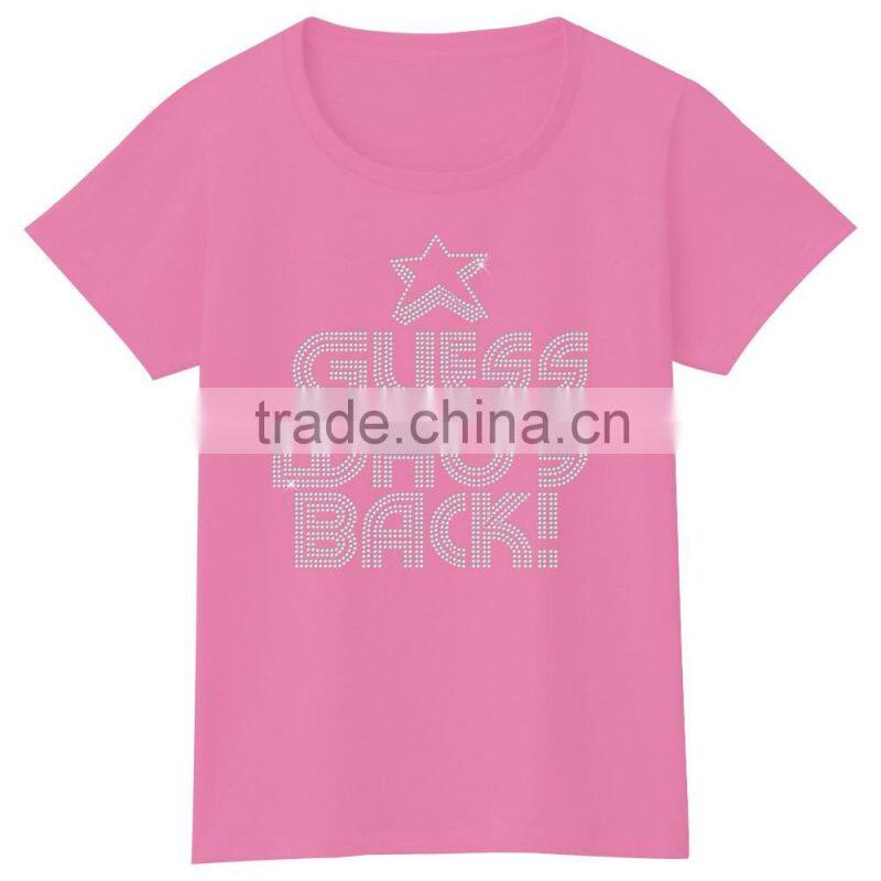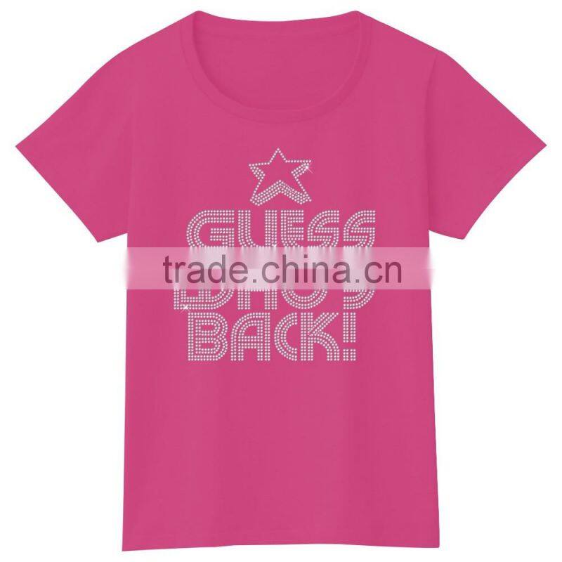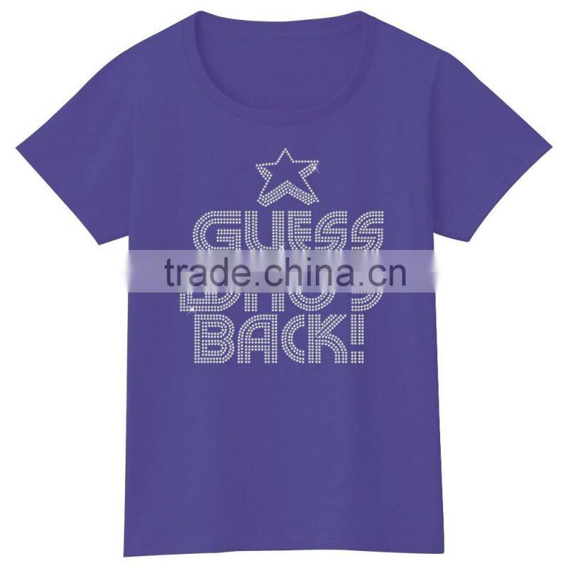 Rhinestone Custom Motif Beautiful Casual Loose t Shirt for Women Girls