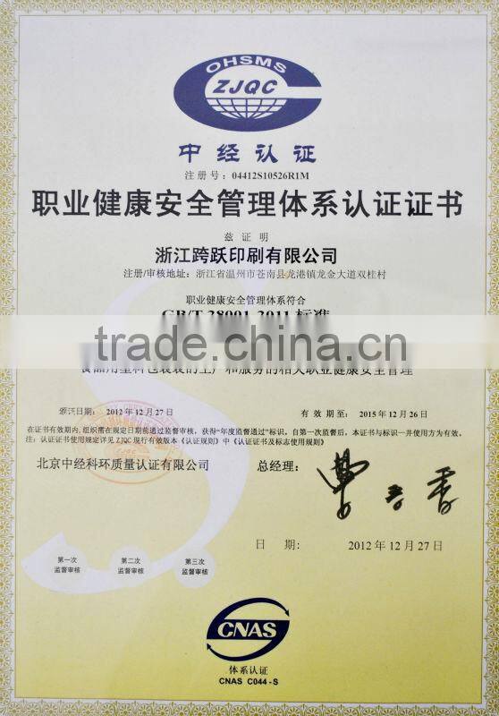Advantage | 1. More than 16 years history in the line of all kinds of bag production. 2. Strict material purchase and technical processing. 3. Already had the Certificate of the system of quality certificates, ISO9001:2000, quality management system standard, own the right to export. 4. All the stages will be timely performance response, we could offer a all-around bag quality and deliver time control. | ||