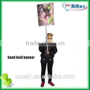Vertical Hand Hold Banner, Advertising Hand Board, Aluminium Customized