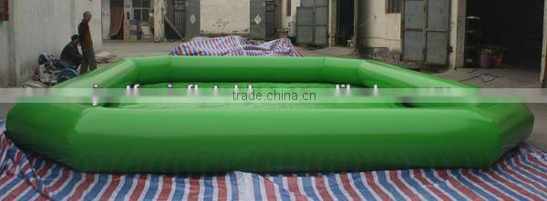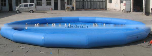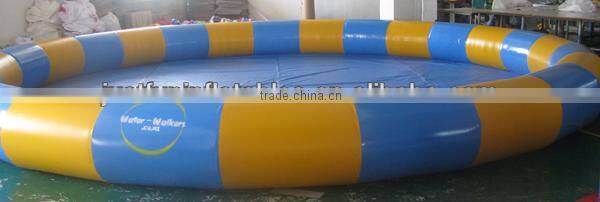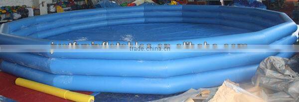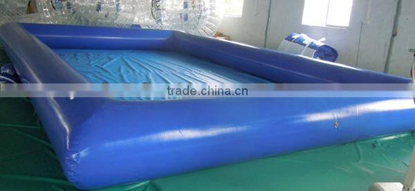 Inflatable pool made of 0.9mm PVC tarpaulin by the technique of heat welding/air sealed, we can put kid bumper boat, handle boat, inflatable water ball, water roller,water trampoline,and water totter in the inflatable swimming pool for children playing.