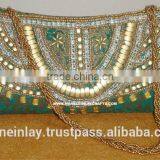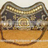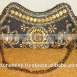Ladies Clutch Purse, Handmade Zari Embroidery Beaded Ladies Clutch Purse