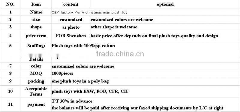 OEM Factory Merry Christmas Man Plush Toy