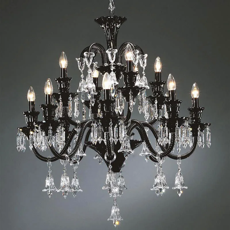 12 Bulbs Modern Black Crystal Chandelier for Dining Room