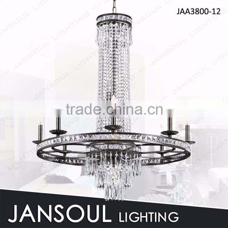 Designer Selected 10 Lights Black Cast Iron Crystal Chandelier for Living Room