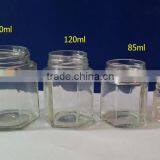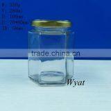 Empty Hexagon Glass Honey Jar With Metal Lid 45ml 80ml 120ml 180ml 280ml 380ml