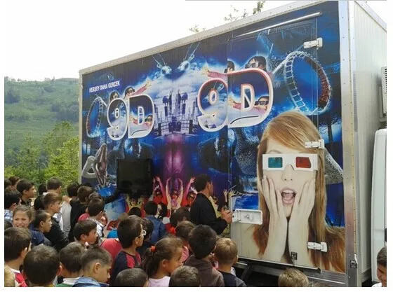 The invention of truck mobile 7d cinema allowed us to be invloved in the world of virtual reality, and this technology is a perfect combination of 3D images and effects produced by the special equipements upon the human perceptive organs.