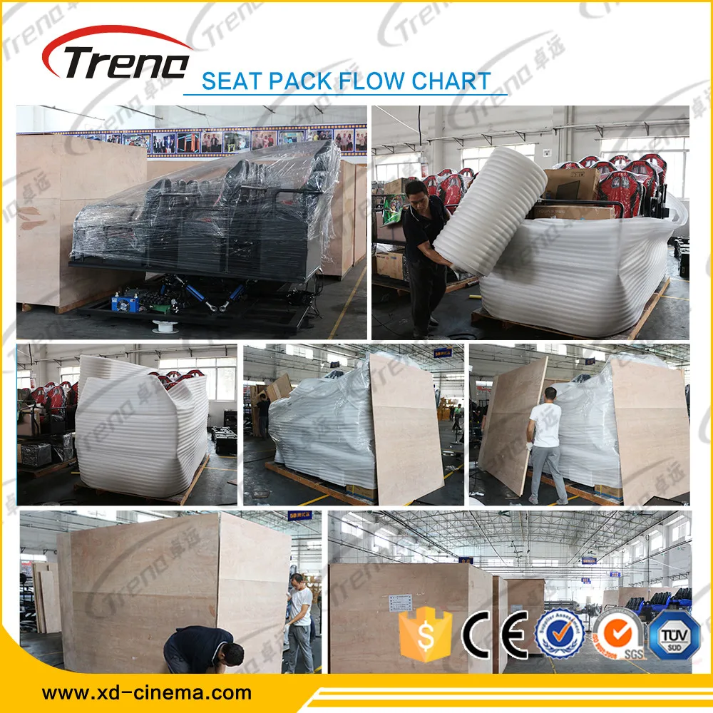 We could feel the effects such as wind blowing, rain spraying, snow flying,lightning blinking, fog simulation, bubble flying , air blowing, leg sweep, seat vibration, back vibration, etc. At the same time, we would experience the exciting motion of the dynamic seats, which drive us being in a fantasy wonderful world.