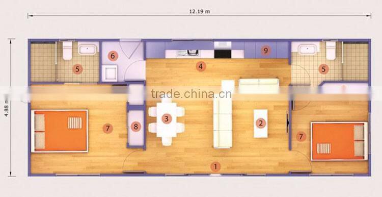 9. Convenient transportation: prefabricated housing modules can be ships, trailer or rail transportation convenient, because housing has met the standard size shipping containers.