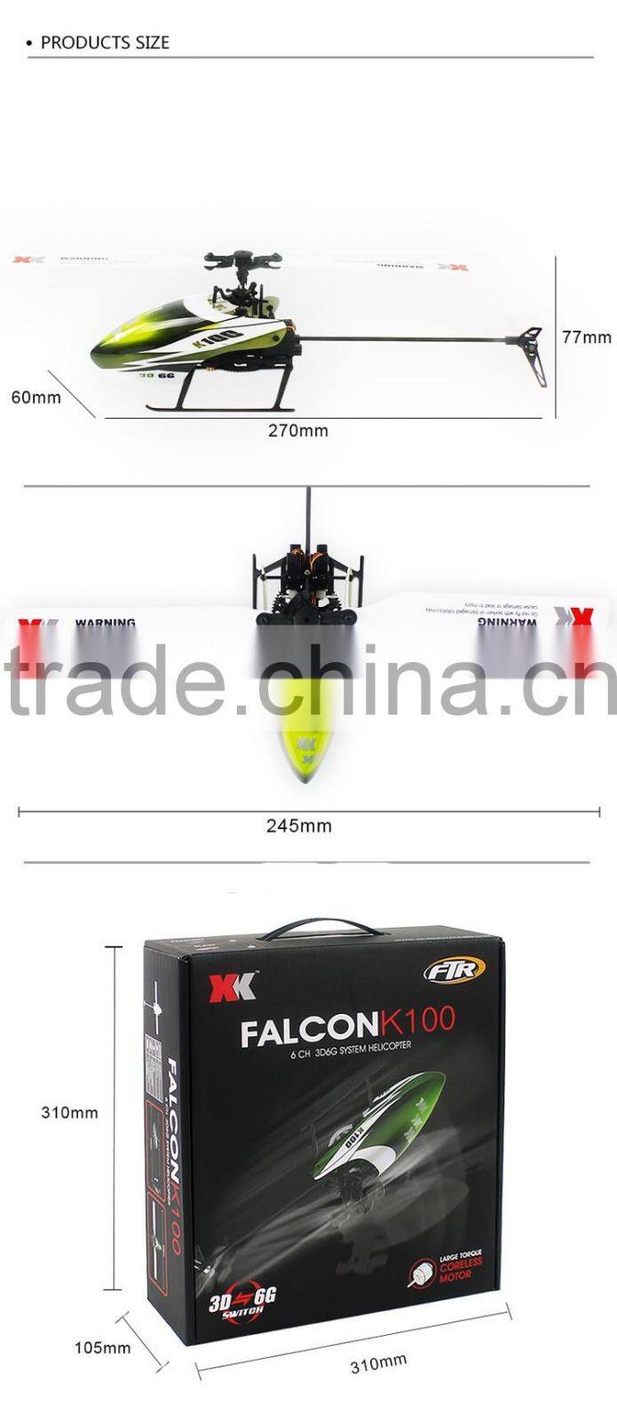 Home > Products > RC Helicopter > RC Helicopter XK K100 Helix 6 Channel 2.4G RTF Helicopter Toys for RC Model