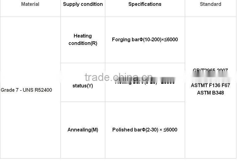 Gr7 | 0.03 | 0.08 | 0.015 | 0.30 | 0.25 | / | / | 0.12~0.25 | / | / | bal |
