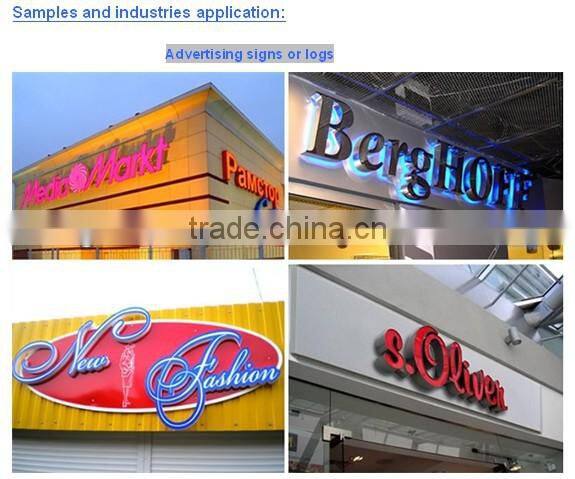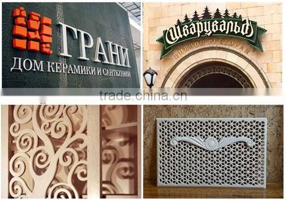 1. Advertising industry: cutting/engraving/drilling/photo engraving on wood, MDF, bamboo, plastic, PVC, acrylic, two colors board, metals, stone etc.