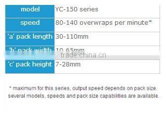The YC-150 series is a fully-automatic overwrapping machine for cosmetics, perfume, chocolate, tea,etc...all kinds single boxes.