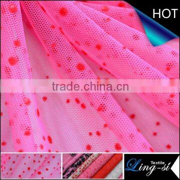 Polyester 30D Eyelet Mesh Fabric With Flocking for Dress and Clothing