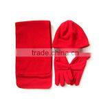 Winter Fashion Solid Polar Fleece Scarf Gloves Beanie Set