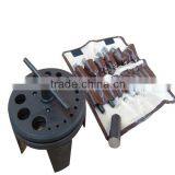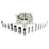 Punching tool set 6mm—38mm*16’s punching dies and table. Used for punching holes in soft brass copper and other soft metals as well as leather canvas and gasketing materials. The set is composed of 16 punching dies ranging in size from 6 to 38mm diameter.