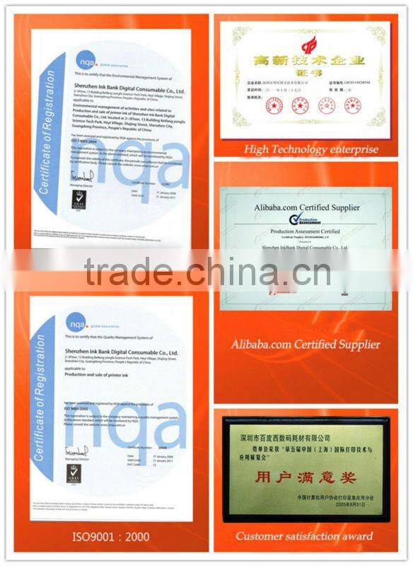 the new developed Anti-UV dye ink produced at the most advanced dust free workshop,with third time filtration,particulate size in 0.2u,which can filter out the impurities and particles in the ink so as to avoid the jam,never jam the nozzle.