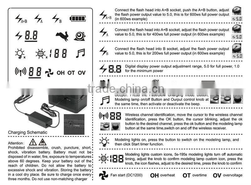 Built-in multi-Channels 2.4GHz remote receiver, match with JINBEI TRS remote controller, far distance, multichannel wireless control Battery Pack