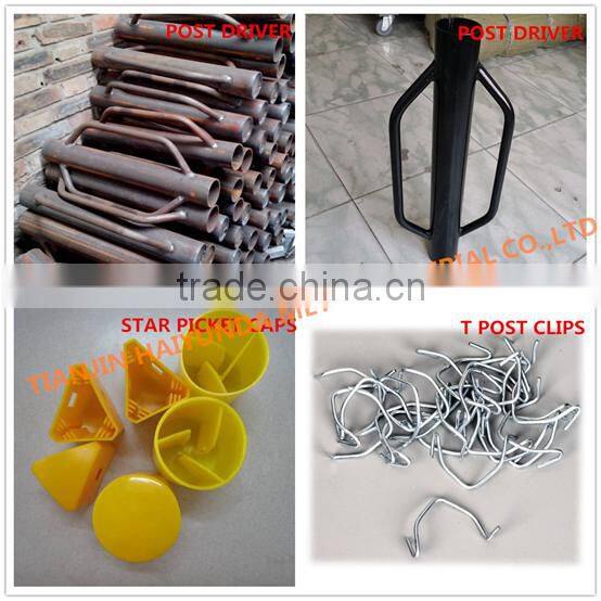 See post driver, star picket cap and fence post clip in the following picture