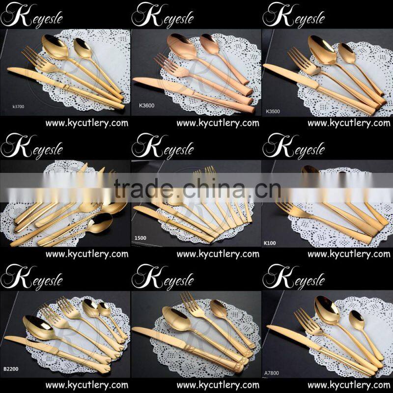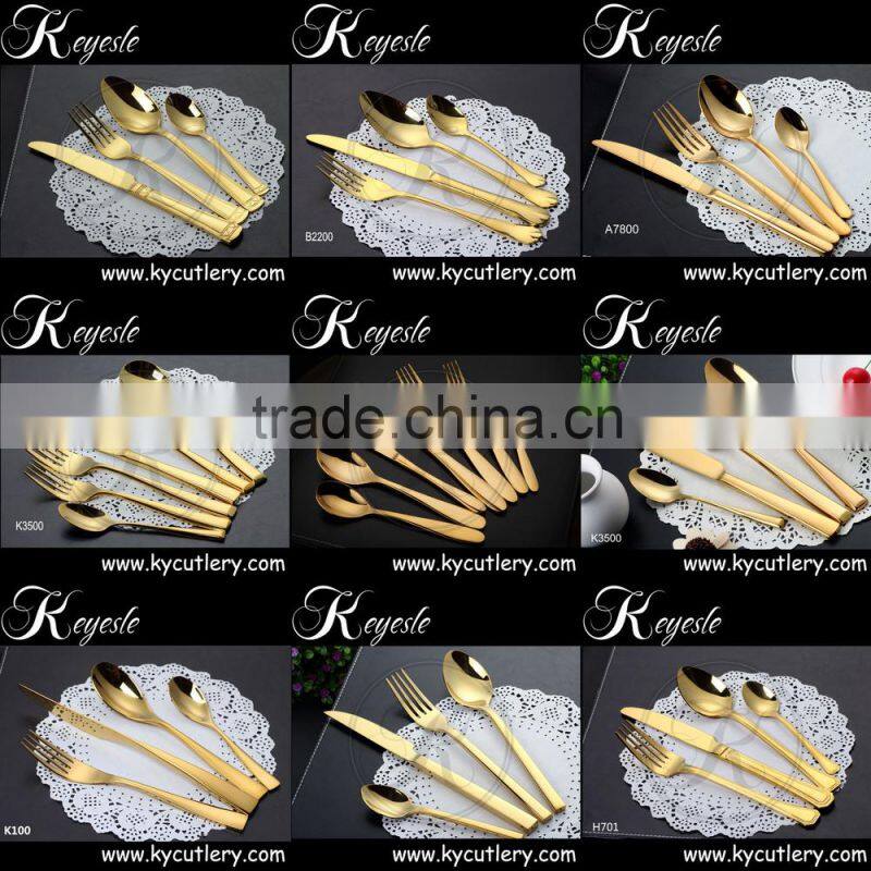 Thanks for your time in viewing our gold stainless steel cutlery and spoon and fork products. More question pls fill the below blank space with production description or price or anything needed, we will give you a reply within 24 hours.