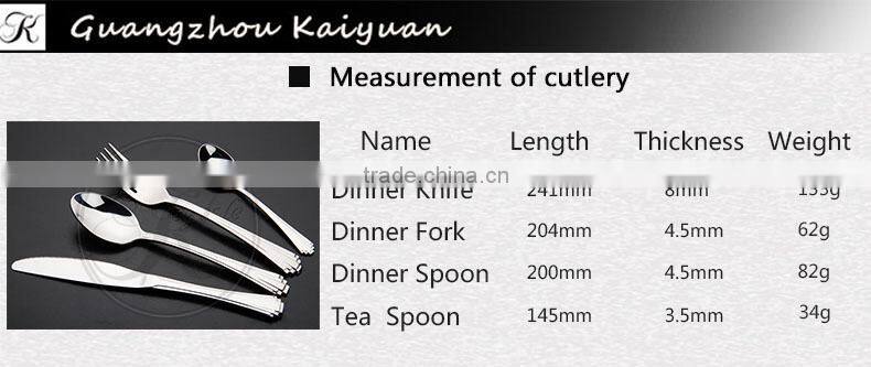 Guangzhou Kaiyuan factory is a collection of stainless steel cutlery design, production, sales in one of the professional cutlery manufacturers. Our products are popular both at home and abroad, and they are exported to Middle East, Europe, South Africa, American and Southeast Asia.