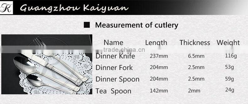 Guangzhou Kaiyuan factory is a collection of stainless steel cutlery design, production, sales in one of the professional cutlery manufacturers. Our products are popular both at home and abroad, and they are exported to Middle East, Europe, South Africa, American and Southeast Asia.