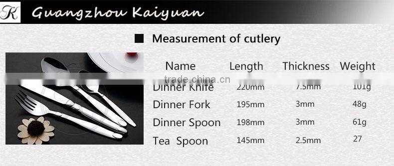 Guangzhou Kaiyuan factory is a collection of stainless steel cutlery design, production, sales in one of the professional cutlery manufacturers. Our products are popular both at home and abroad, and they are exported to Middle East, Europe, South Africa, American and Southeast Asia.
