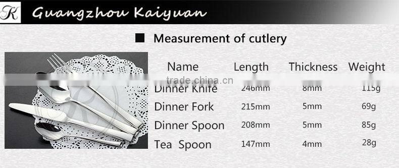 Guangzhou Kaiyuan factory is a collection of stainless steel cutlery design, production, sales in one of the professional cutlery manufacturers. Our products are popular both at home and abroad, and they are exported to Middle East, Europe, South Africa, American and Southeast Asia.
