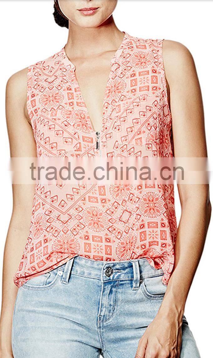 2016 Chinese Beautiful Ladies Fashion Design Sleeveless Blouses